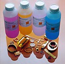 Sais, aditivos, suplementos, anodos e banhos permitem a eletrodeposição de prata, ouro, ródio e ligas paládio-níquel e cobre-estanho-zinco na superfície de peças técnicas ou decorativas.
